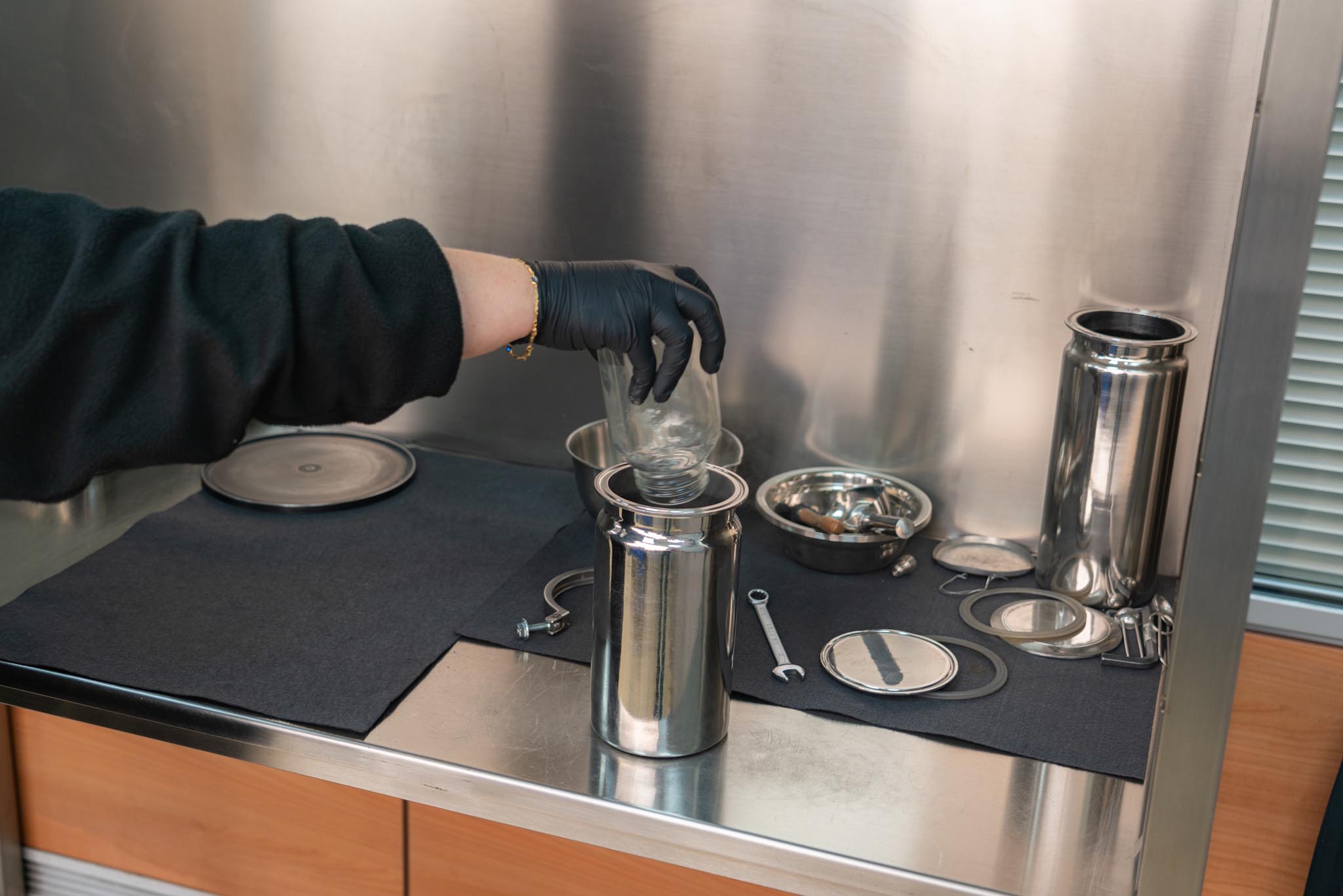 Se obtiene una muestra representativa. Se realiza un análisis preliminar en el lugar para proporcionar un contenido estimado al cliente. Todos los clientes son bienvenidos a presenciar todo el proceso de muestreo, así como a recibir una muestra.
